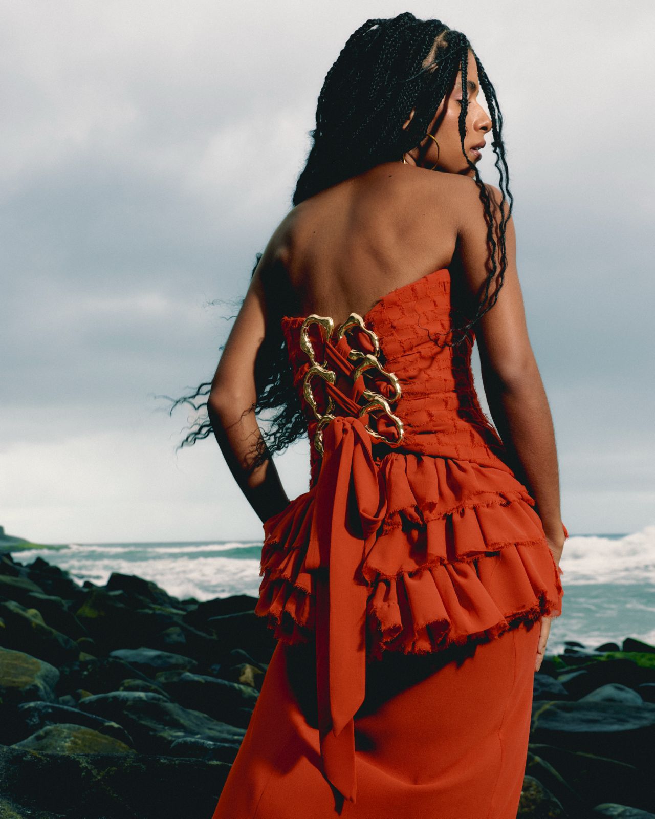 Confeccionado em cetim de seda leve, o vestido Solana tem corte no viés que garante caimento fluido e natural. O decote canoa na frente contrasta com as costas nuas em degagê, criando equilíbrio entre sutileza e ousadia.